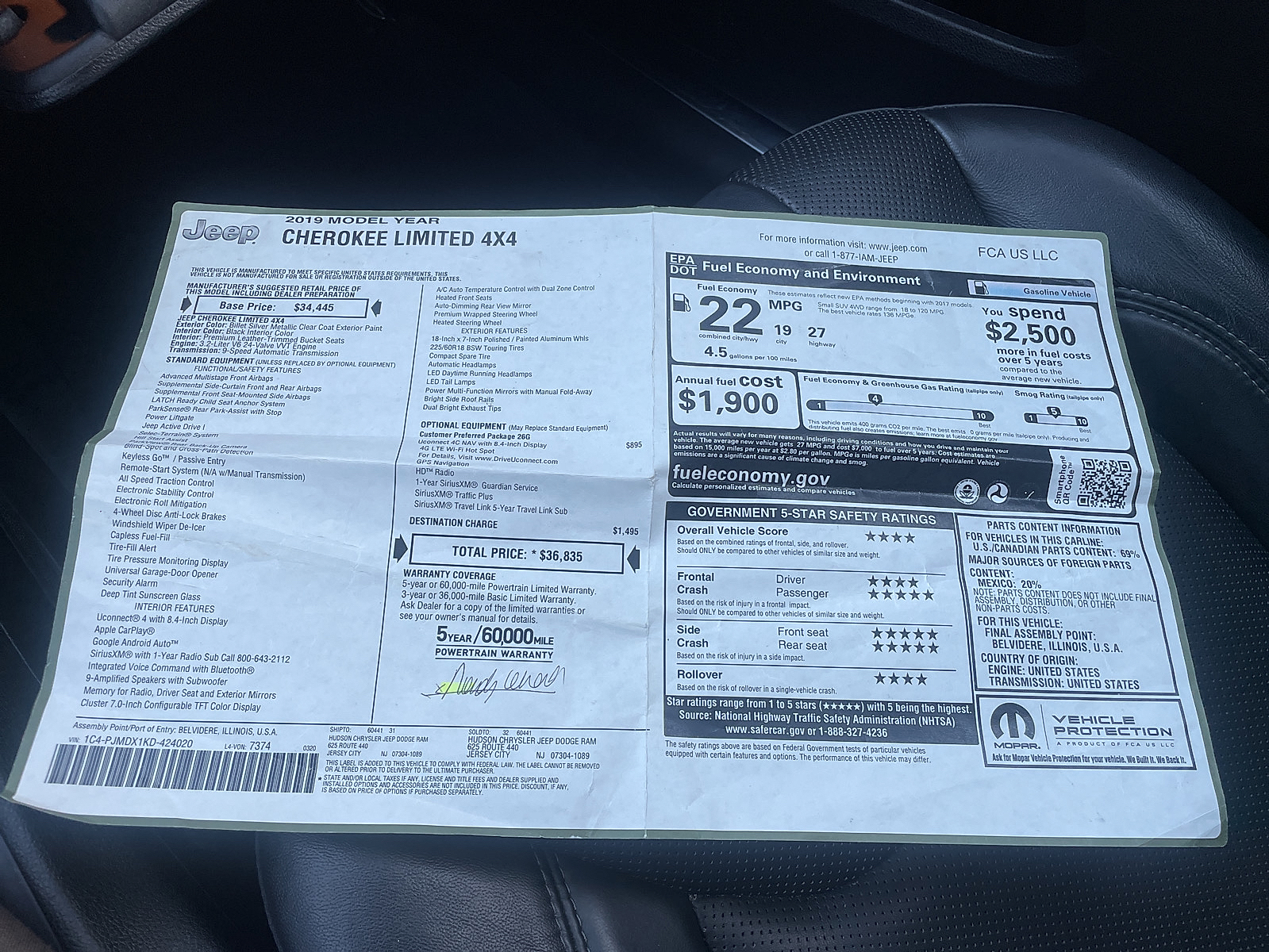 - VIN 1C4PJMDX1KD424020