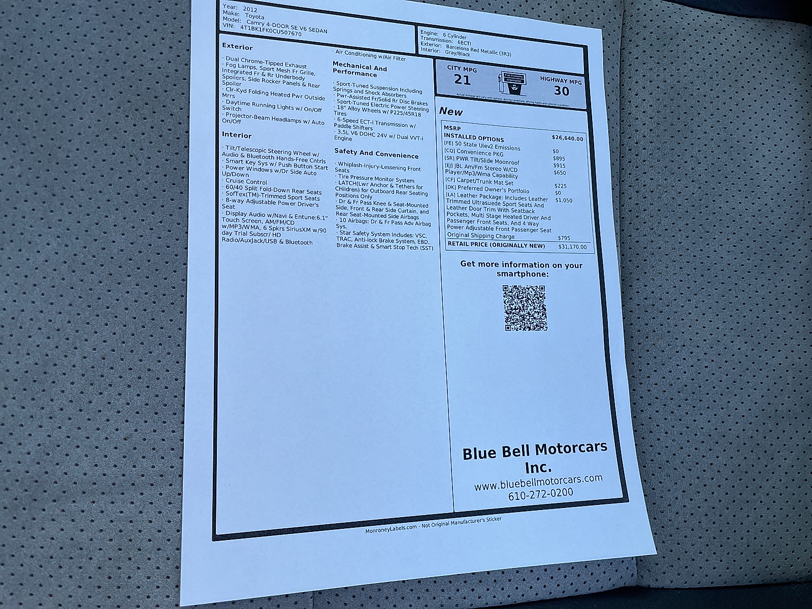 - VIN 4T1BK1FK0CU507670