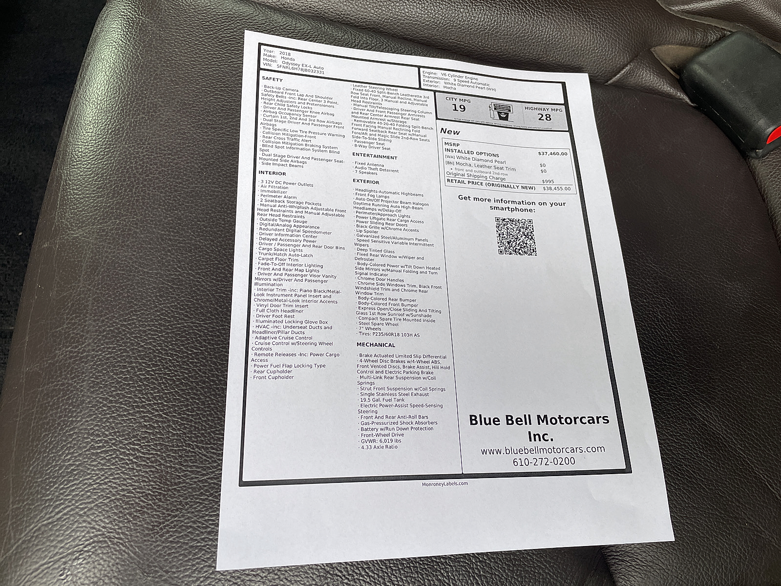 Our Odyssey is a 1-0wner van with an accident-free CARFAX ! In addition to being particularly beautiful both inside and out, it has just received a new Timing belt and water pump, making it 100% road ready ! It has a new Pennsylvania State Safety and Emission inspection and is ready to provide its next owner with many more years and miles of the Honda experience. We include a 3 month / 3000 mile warranty for worry free driving, which can be upgraded & extended. Call STUART at 610-272-0200 to schedule a test drive today !