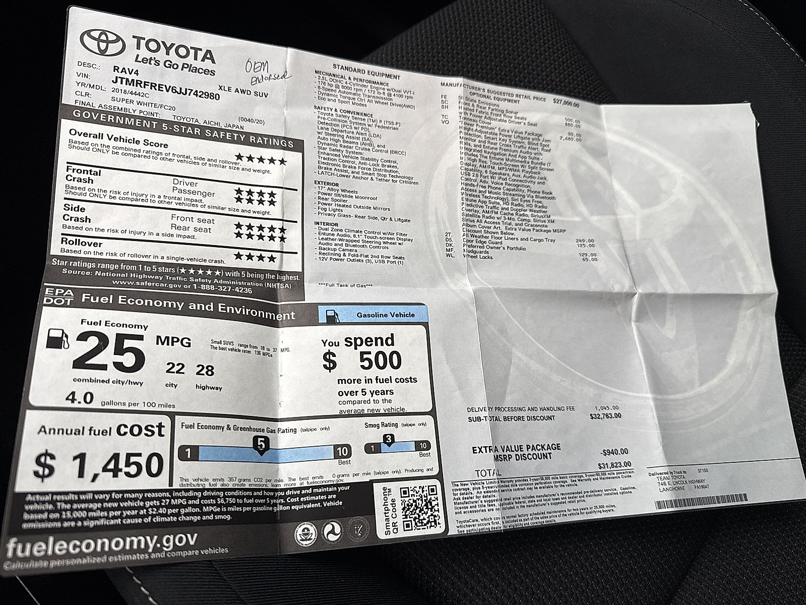 - VIN JTMRFREV6JJ742980